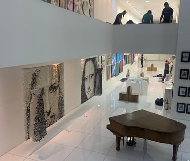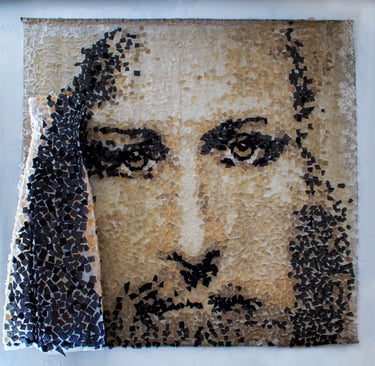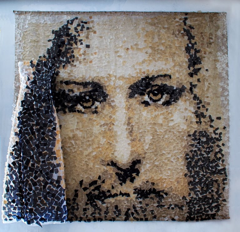 A arte de Leonardo Chiasso transcende a matéria e se manifesta em formas que dialogam com o tempo e o espaço. Seus mosaicos, NASCEM A PARTIR DE TECIDOS RECICLADOS DO ATELIER, trabalhados com precisão e sensibilidade, são convites silenciosos à contemplação fragmentos de beleza que se unem para contar histórias únicas.